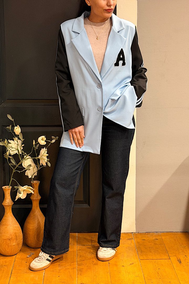 Deze blazer is een echte musthave voor het nieuwe seizoen. De licht oversized pasvorm zorgt voor een comfortabele fit, terwijl de schoudervullingen een mooi en vrouwelijk silhouet creëren. De lange contrasterende mouwen zijn afgewerkt met een sportieve bies, wat de blazer een speelse en moderne uitstraling geeft.