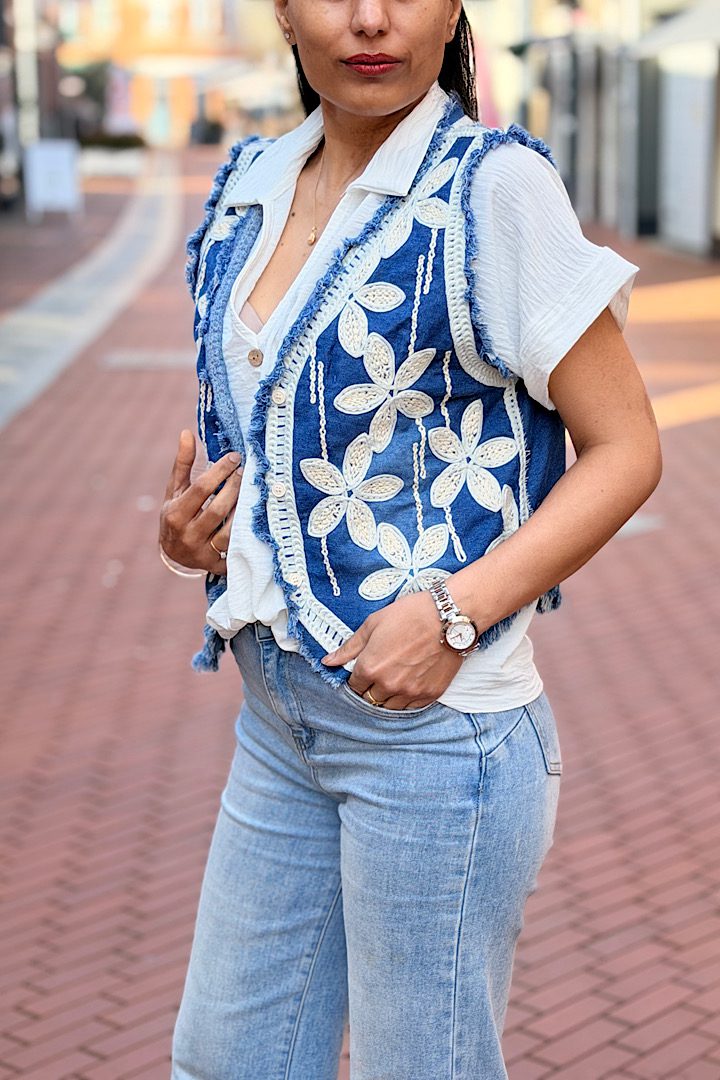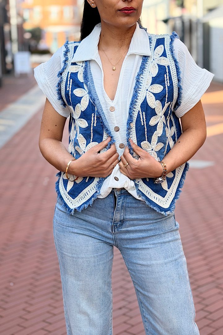 Vest/gilet knopsluiting, perfect als laagje over blouse of T-shirt. One size past tot maat 42(L), lichtgewicht en ademend voor voorjaar en zomer.
