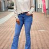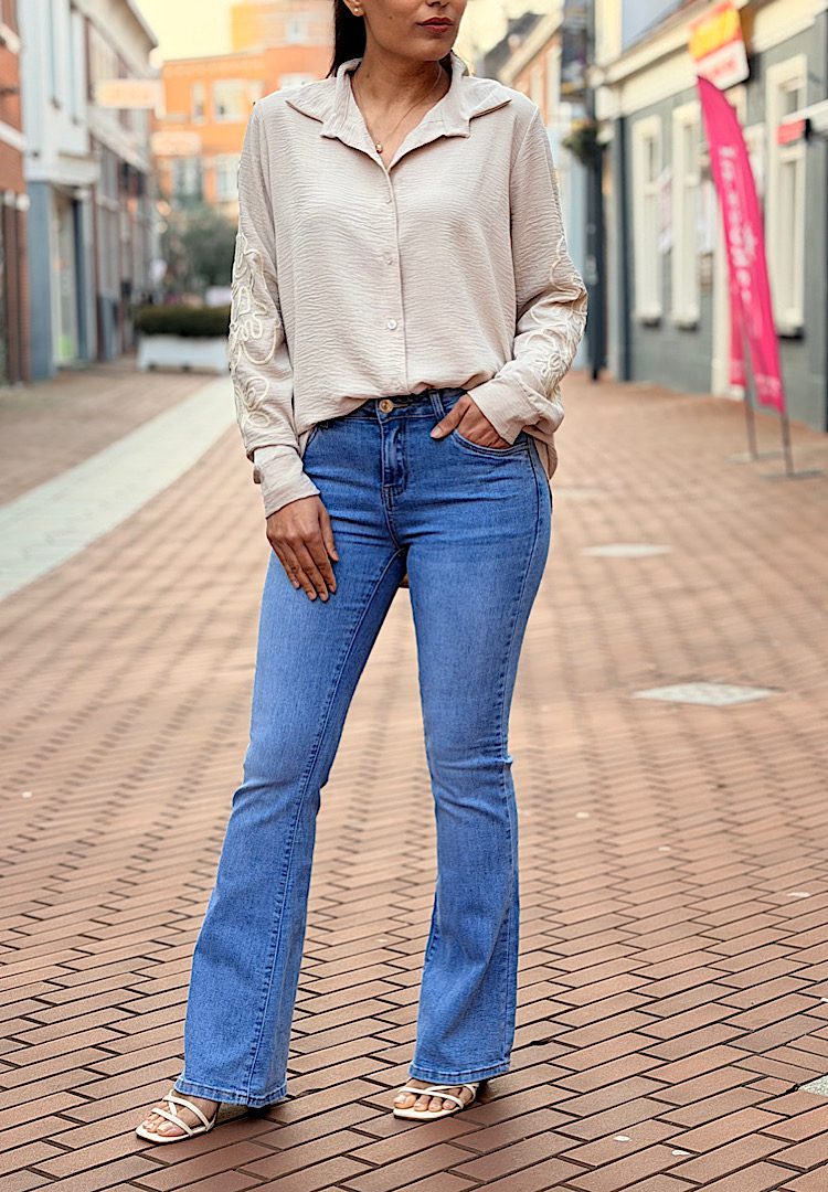 5-Pocket high waist wide leg jeans van high stretch denim met ritssluiting