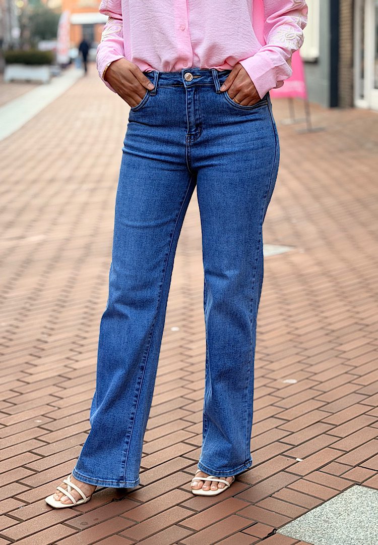 5Pockets high waist jeans met ritssluiting, mooie steekzakken aan de voorkant en aan de achterkant 2 kont zakken