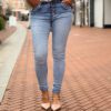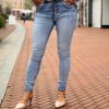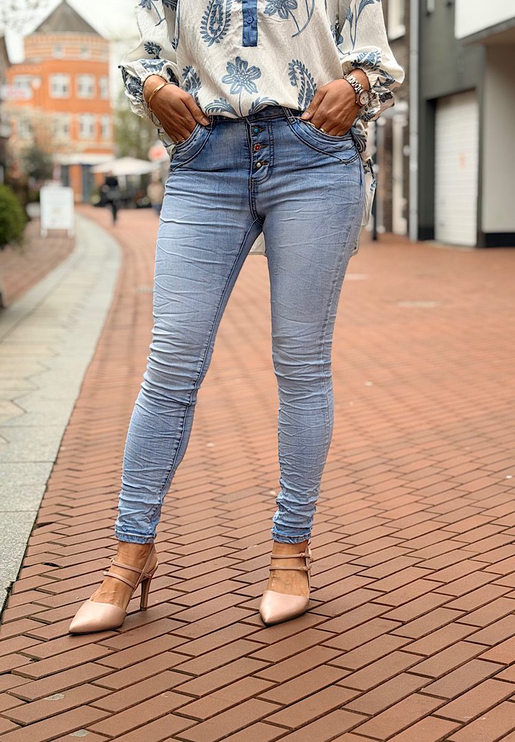 5Pockets high waist jeans met knoopsluiting, mooie steekzakken aan de voorkant en aan de achterkant 2 kont zakken