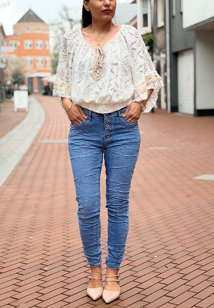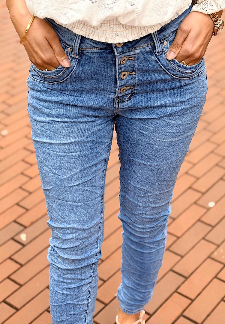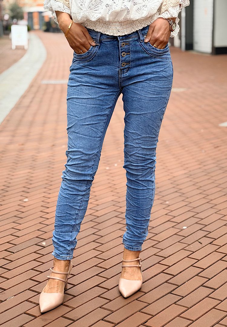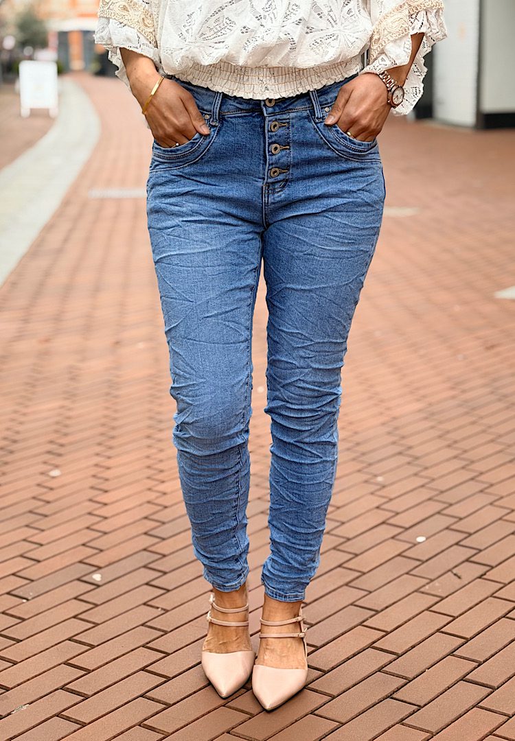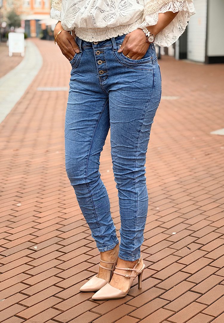 Jewelly High Waist Jeans Knopensluiting