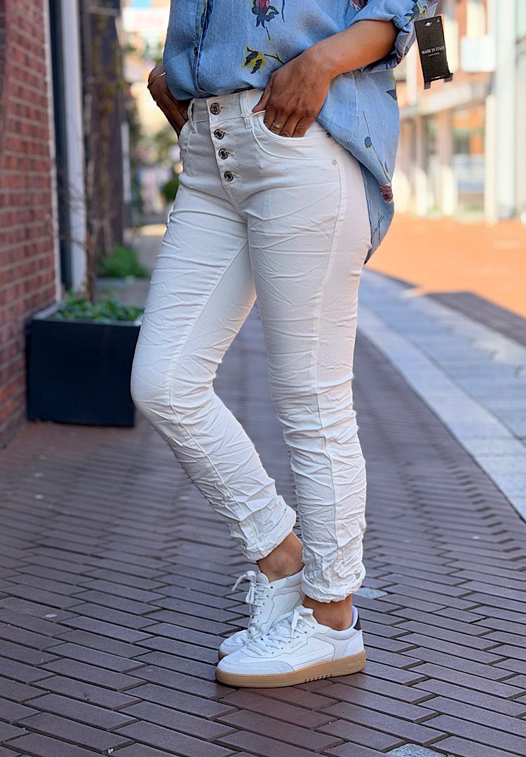 5-Pocket high waist jeans van high stretch denim met knopensluiting