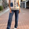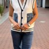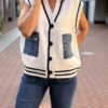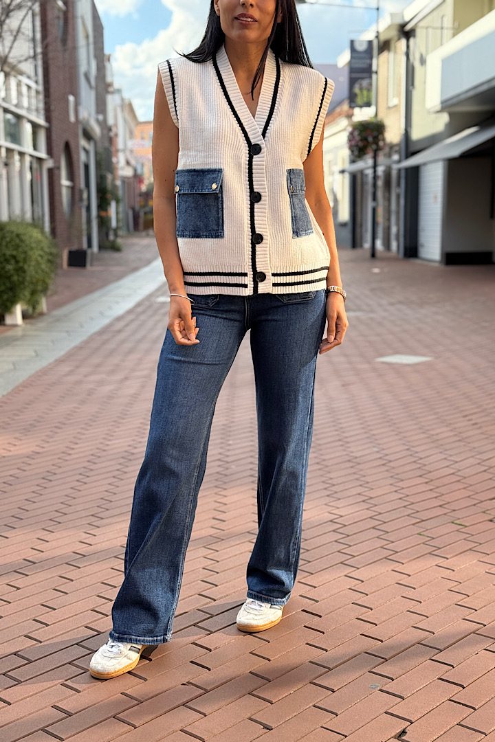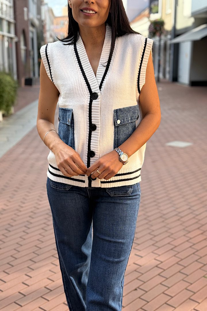 Knitted Tank Top / Gilet met Denim Trim Zakken