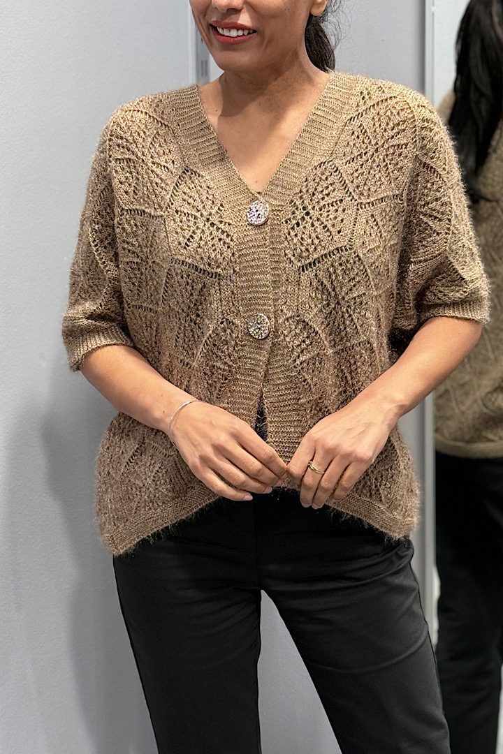 €14.99 Toevoegen aan winkelwagenBasic V-hals dunne trui donker taupe one size 40/44