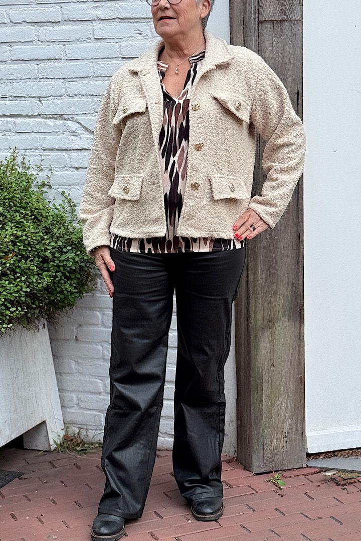 Trendy bouclé jasje met chique gouden knopen en een tijdloze pasvorm. Een echte must-have die elke outfit afmaakt!