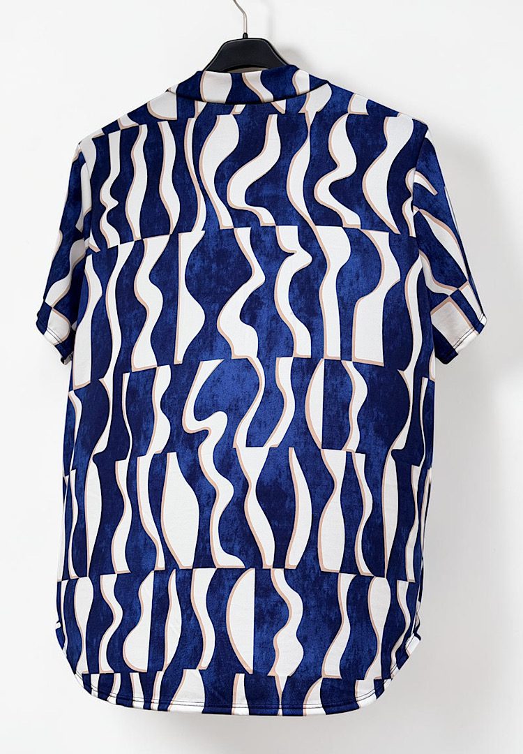 Travel blouse met print blauw/wit