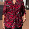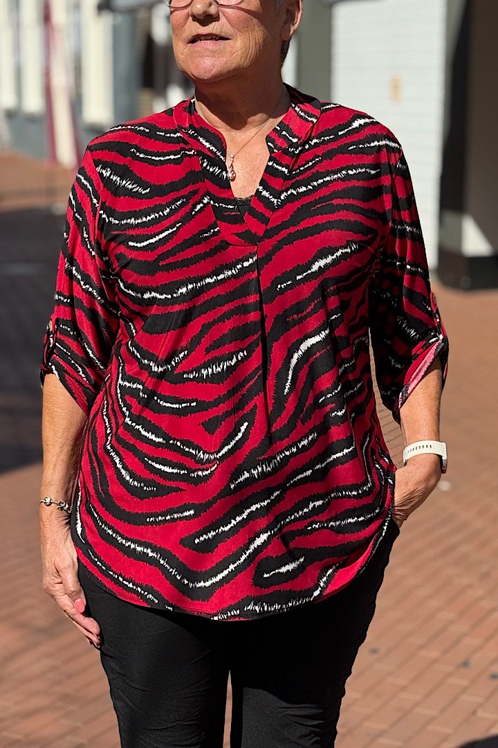 Detail: Deze travelstof blouse is voorzien van een platte kraag met een v-hals, driekwart mouwtjes met mouwophouder.