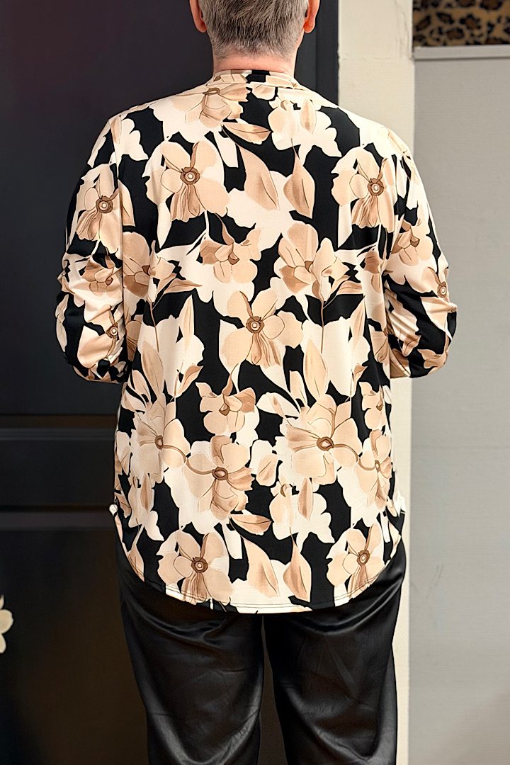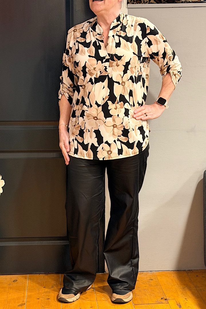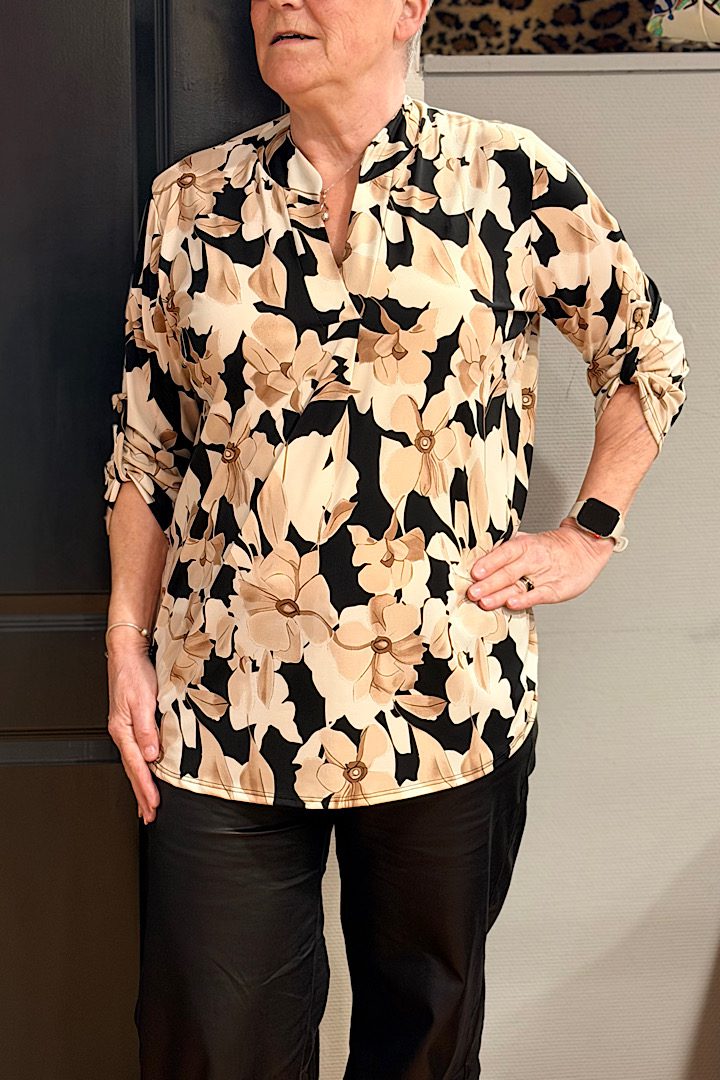 Travel blouse met print zwart/beige