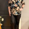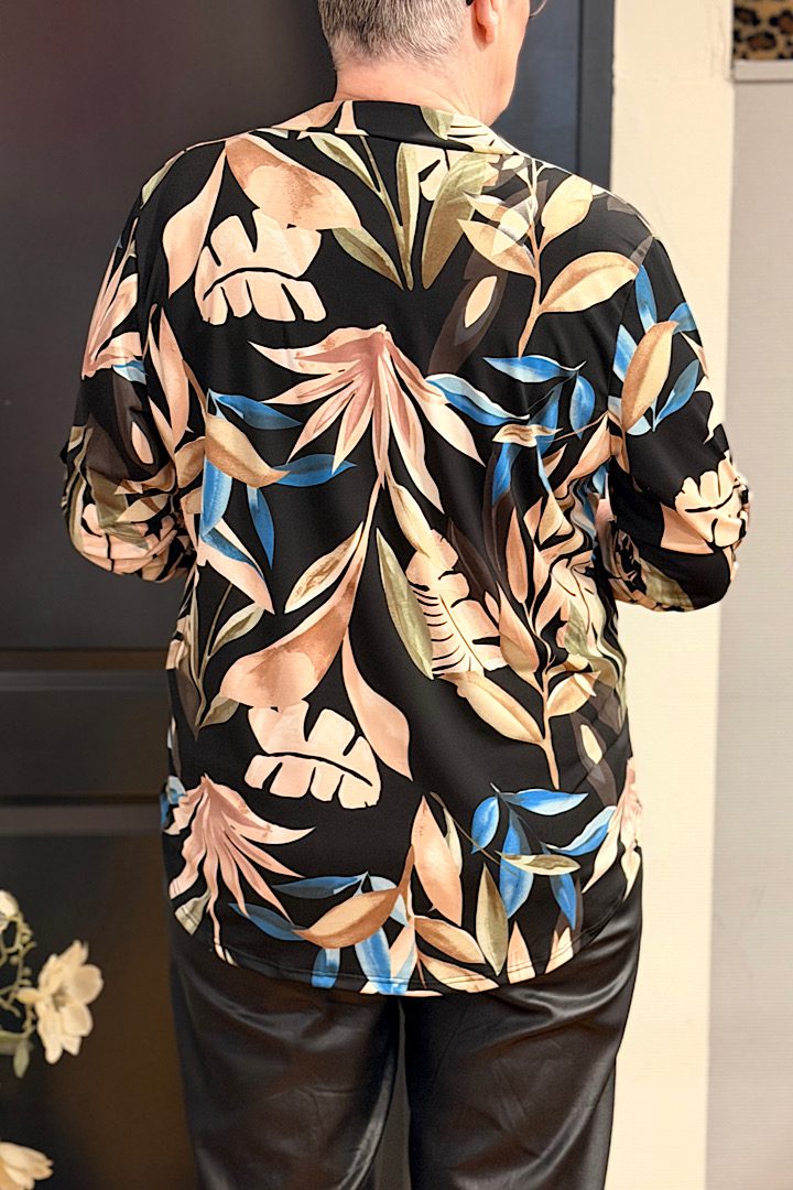 Travel blouse met print zwart