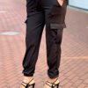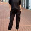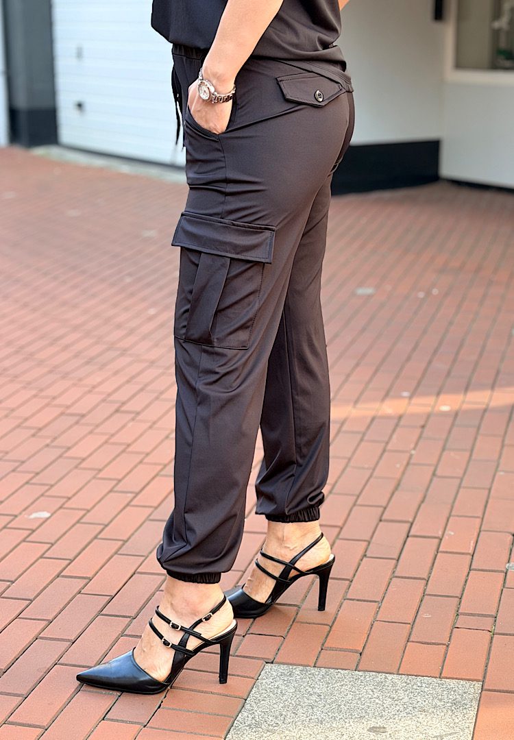 Combineer comfort met een stoere look. Deze cargo broek is gemaakt van travelstof: kreukvrij, ademend en met heerlijke stretch. De hoge taille en de elastische details zorgen voor de perfecte pasvorm de hele dag door.