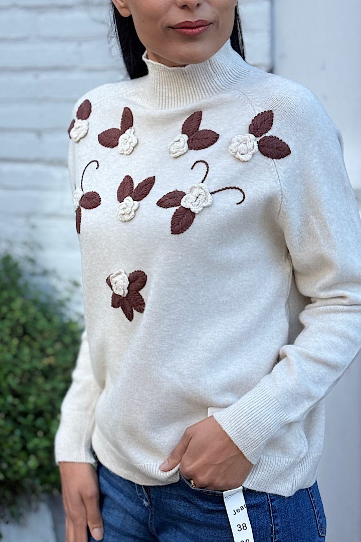 Trui Turtle neck bloemen aantal